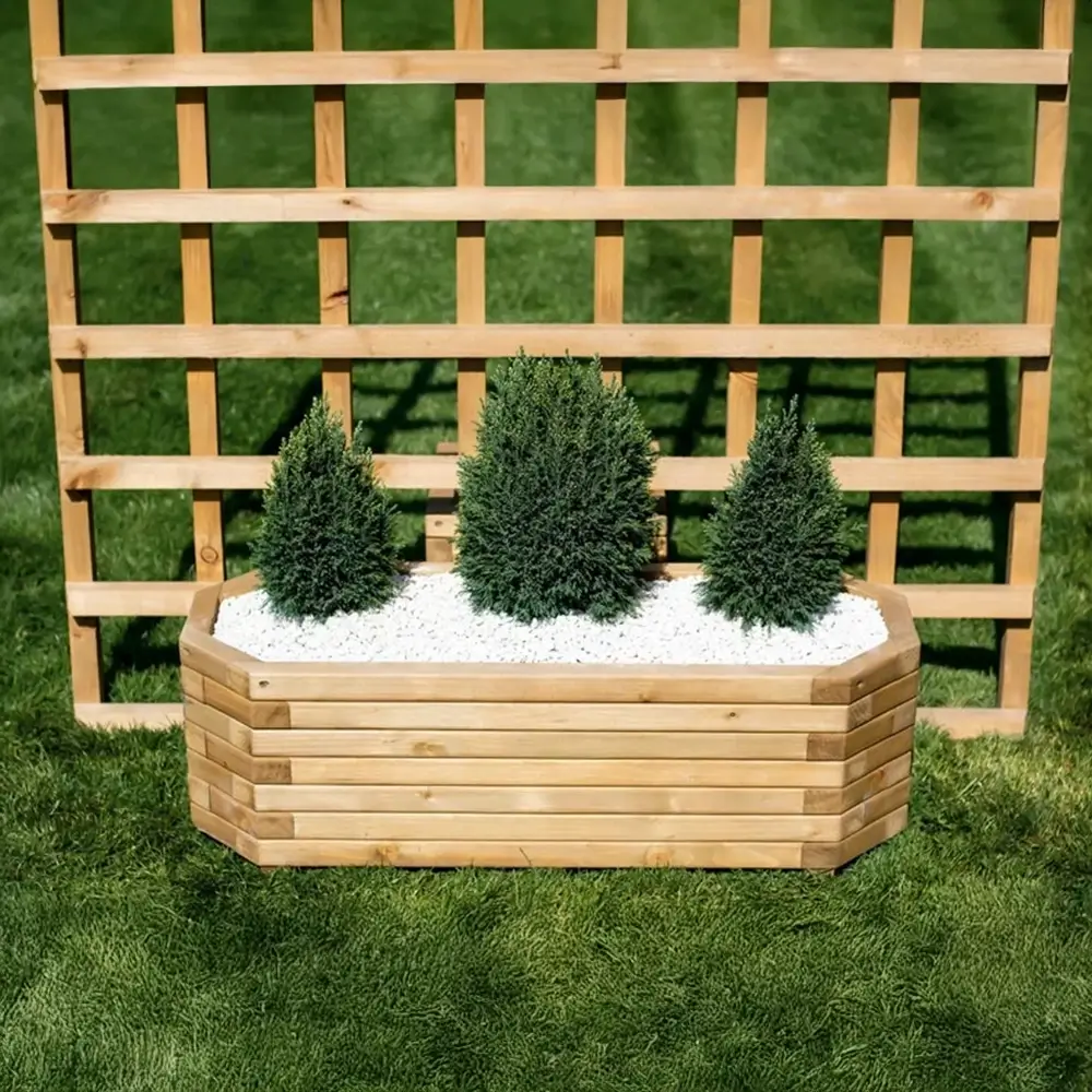 The Octagonal Wooden Planter is a beautifully designed, high-quality eight-sided planter, handcrafted from durable pine softwood and available with a natural oak stain finish. Its classic shape and smooth planed surface make it a perfect addition to any garden, patio, balcony, or terrace.